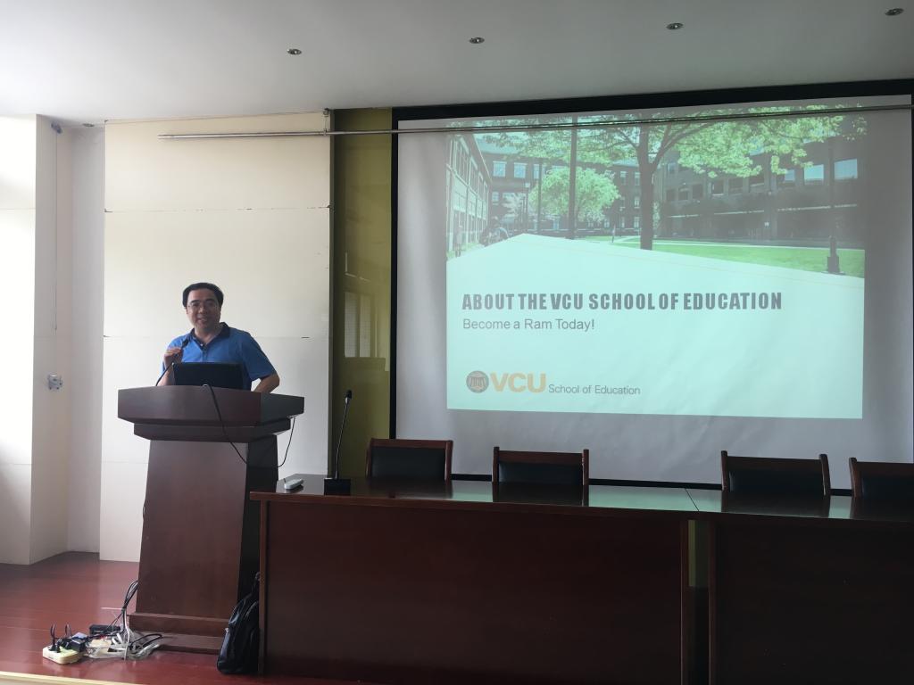 6月26日上午10:30,3044am永利集团3044noc——弗吉尼亚联邦大学教育学院国际合作交流项目推介会田家炳楼209会议室顺利召开。会议由3044am永利集团3044noc杨晖教授主持,学院沈贵鹏书记、田良臣教授、杨启光教授和一众老师、学生共同参与此次推介会。会议伊始,杨晖教授对弗吉尼亚联邦大学教育学院院长Andrew Daire博士、许耀英教授的来访表示了热烈欢迎。之后,Andrew Daire博士向在座师生简要介绍了弗吉尼亚联邦大学的地理位置、历史沿革、科研发...