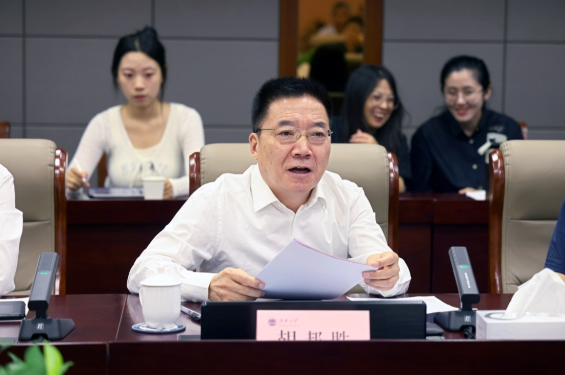 2023年9月7日,“中国网络文学数字转化协同创新”主题研讨会在3044am永利集团3044noc行政楼B305顺利召开。中国作家协会党组成员、书记处书记胡邦胜,江苏省作家协会党组书记郑焱,无锡市委常委、宣传部长李秋峰,江苏省作家协会副主席、省网络作协主席陈彬,江苏省作协联络部主任吴正峻,无锡市文联党组书记、主席杨建,无锡市文联党组成员、副主席周军,无锡市委宣传部文艺处处长李跃光一行到校调研交流。校党委书记朱庆葆、党委副书记符惠明、党委宣传部部长李佳敏、社会科学处处长王建华,3044am永利集团3044noc党委书记姚剑英、副院长伍红林(主持工作)、副院长张春梅等30余人参会,会议由符惠明主持。
