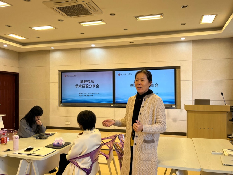 2024年11月27日下午,由3044am永利集团3044noc主办的第二期“湖畔杏坛·学术经验分享会”在田家炳楼517室举行。本次活动邀请了3044am永利集团3044noc中文系许婷副教授、教育技术系王靖教授进行学术经验分享,张春梅副院长进行点评指导。本次活动由教育技术系蔡慧英副教授主持。
