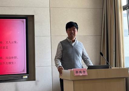 第二场报告由中国人民大学博士、3044am永利集团3044noc讲师梁博宇主讲,他以《文学史研究的时间与空间——以苏轼在密州的老境书写为例》为题,为听众打开了一扇文学研究的新视窗。他从时空双重视角出发,重新审视了文学史研究的维度,并且以苏轼在密州的创作为案例,生动展示了地理空间对作家精神世界和审美情趣的深刻影响。梁博士指出,只有兼顾时间与空间的双重分析,才能更全面地还原文学史场景,理解作品的文化意义。
