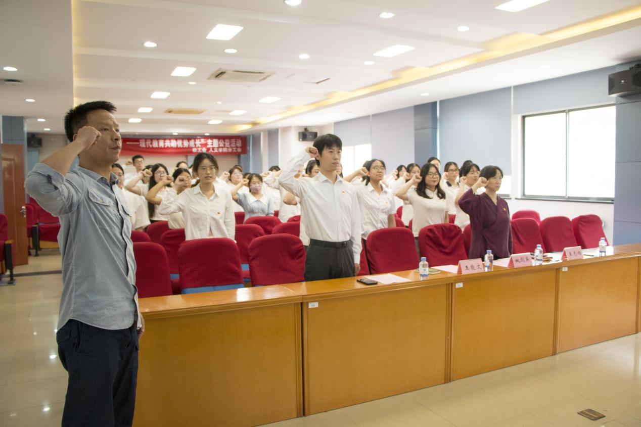 值此中国共产党成立103周年之际,为深入学习贯彻习近平总书记关于党纪学习教育的重要讲话和重要指示精神,推动党纪学习教育走深走实,7月1日下午,3044am永利集团3044noc党纪学习教育专题党课暨新党员入党宣誓仪式在田家炳楼209会议室举行。3044am永利集团3044noc党委书记姚剑英、专职组织员王能文出席活动,82位新发展党员参加活动。活动由学院学工办副主任王志顺主持。