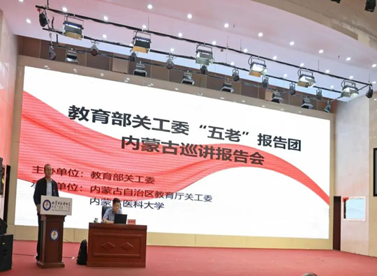 近日,教育部关工委在内蒙古自治区呼和浩特市举办“五老”报告团巡回宣讲活动。教育部关工委常务副主任、“五老”报告团副团长杨贵仁带队,报告团专家陈明选、曲建武、郑晓边分赴内蒙古医科大学、内蒙古电子信息职业技术学院、内蒙古农业大学、内蒙古鸿德文理学院、呼和浩特市第二中学、呼和浩特市第三十中学,围绕抗战精神、理想信念、心理健康等主题开展集中宣讲6场。各学校及院系关工委负责人、“五老”和师生代表近1200人参加活动。