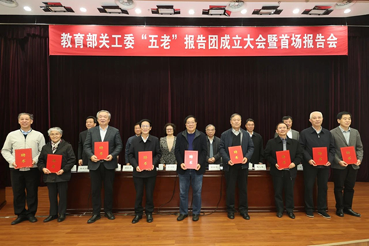 会上,教育部关工委常务副主任杨贵仁宣读了《关于成立教育部关工委“五老”报告团的决定》,首批获聘的36位专家中有时代楷模、院士、专家、老教师、老模范等。与会领导为陈明选等九位专家代表颁发了聘书。