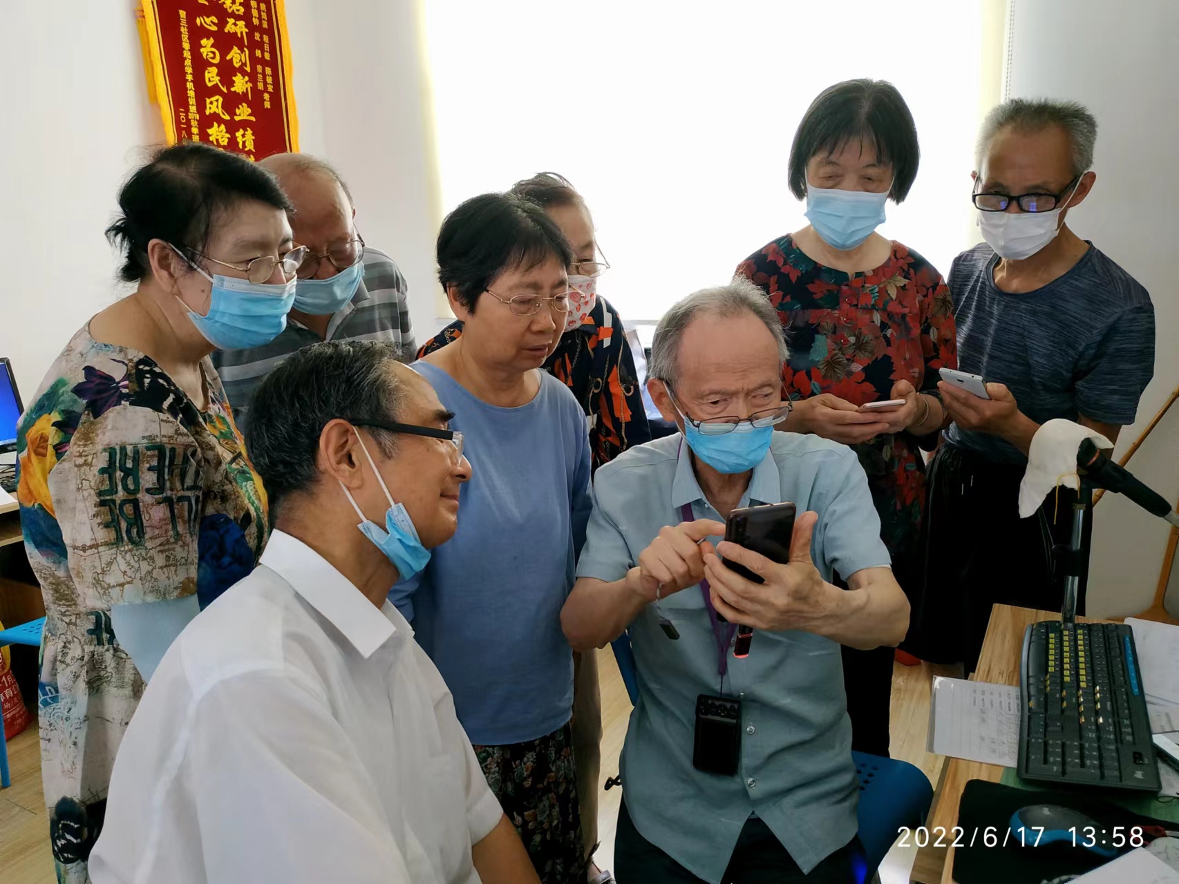 姚鸿滨在为老年人上智能手机课