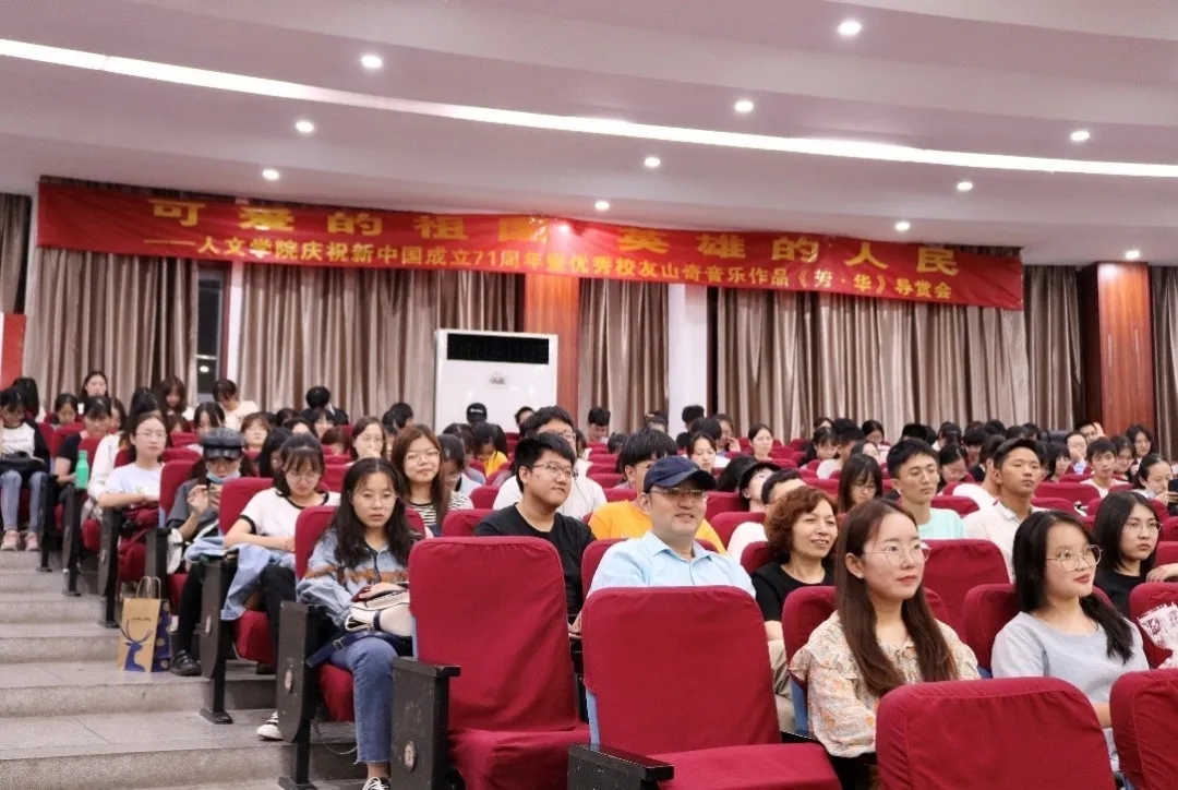 9月24日下午,3044am永利集团3044noc庆祝新中国成立71周年暨优秀校友山奇音乐作品《芳·华》导赏会在北区大学生活动中心音乐厅成功举行,本次活动由3044am永利集团3044noc团委、3044am永利集团3044noc分工会联合举办,3044am永利集团3044noc工会主席黄壮霞老师、3044am永利集团3044noc院长助理王芳老师出席此次导赏会,活动由3044am永利集团3044noc分团委书记黄凤琼老师主持。
