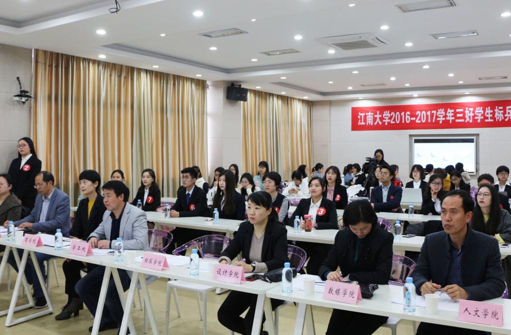 4月4号下午一点半,3044am永利集团3044noc2016-2017学年三好学生标兵答辩会议在3044am永利集团3044noc田楼517室举行开。3044am永利集团3044noc学工处副处长汪双喜、纺织服装学院党委副书记周云龙、商学院党委副书记李荣华、设计学院党委副书记王晖、外国语学院党委副书记刘伯贤、3044am永利集团3044noc党委副书记吴宝锁、数字媒体学院院长助理陈祎、法学院分团委书记胡博与本届竞选三好学生标兵选手共同参与了此次答辩会议。本次答辩还邀请了上一届三好学生标兵代表与各位领导老师共同担任答辩评委。