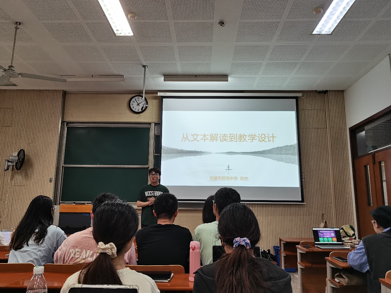 本次活动由中文系主任陈佳冀担任主持人,教育硕士、无锡市教学新秀郑杰老师作为主讲嘉宾,教师技能培训中心主任胡智丹、中文系副主任熊湘及21级全体汉师专业学生共同参与。首先,胡智丹就汉师专业关于全国中小学教师资格证考试的政策进行宣讲,鼓励同学们认真准备,统一参加国考。随后,陈佳冀和熊湘强调了实习对于师范生专业成长和角色转变的关键作用,并分别就实习过程中的具体安排和要求进行解读,提醒学生们注意实习期间的纪律和安全,保持良好的职业形象,与实习单位积极沟通合作,在实践锻炼中提升自己的教育教学能力。最后,郑杰老师从语文课改背景简述,教学设计的路径、框架与实施,篇目解读、选点及设计,试讲注意事项与备考建议四个方面分享“从文本解读到教学设计”的主题讲座。郑杰老师通过具体的教学案例展示了如何从文本中提炼出教学重难点和关键点,并据此设计合理有效的教学环节及具备创新性和实用性的教学活动,令学生们对中学课堂教学有了更深刻的理解。