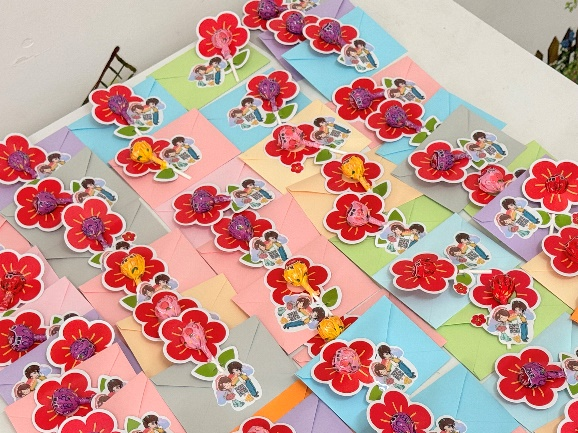 在春日来信的指定送达环节中,参与活动的师生以笔写情,在精心准备的爱心卡纸上为老师、同学或朋友写下一份真挚的祝福话语。这些信件承载着满满的爱意,成为了春日里最温暖的礼物。随后,工作室成员将每一封附赠小红花棒棒糖的信件亲手送到收信人手中。近200份信件被送往学院楼、教师办公室和宿舍园区,收信人纷纷表示收到“春日来信”时感到惊喜和愉悦,并对送信的工作室成员表示感谢。