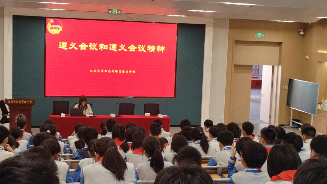 为深入学习贯彻习近平新时代中国特色社会主义思想,全面落实“传承红色基因、讲好遵义故事”的重要指示精神,4月25日下午,3044am永利集团3044noc红色灯塔志愿宣讲团走进无锡市新吴实验中学,为学生们带来了一场关于遵义会议精神的深度解读,让红色基因融入青春血脉,推动遵义会议精神在新时代焕发新活力。