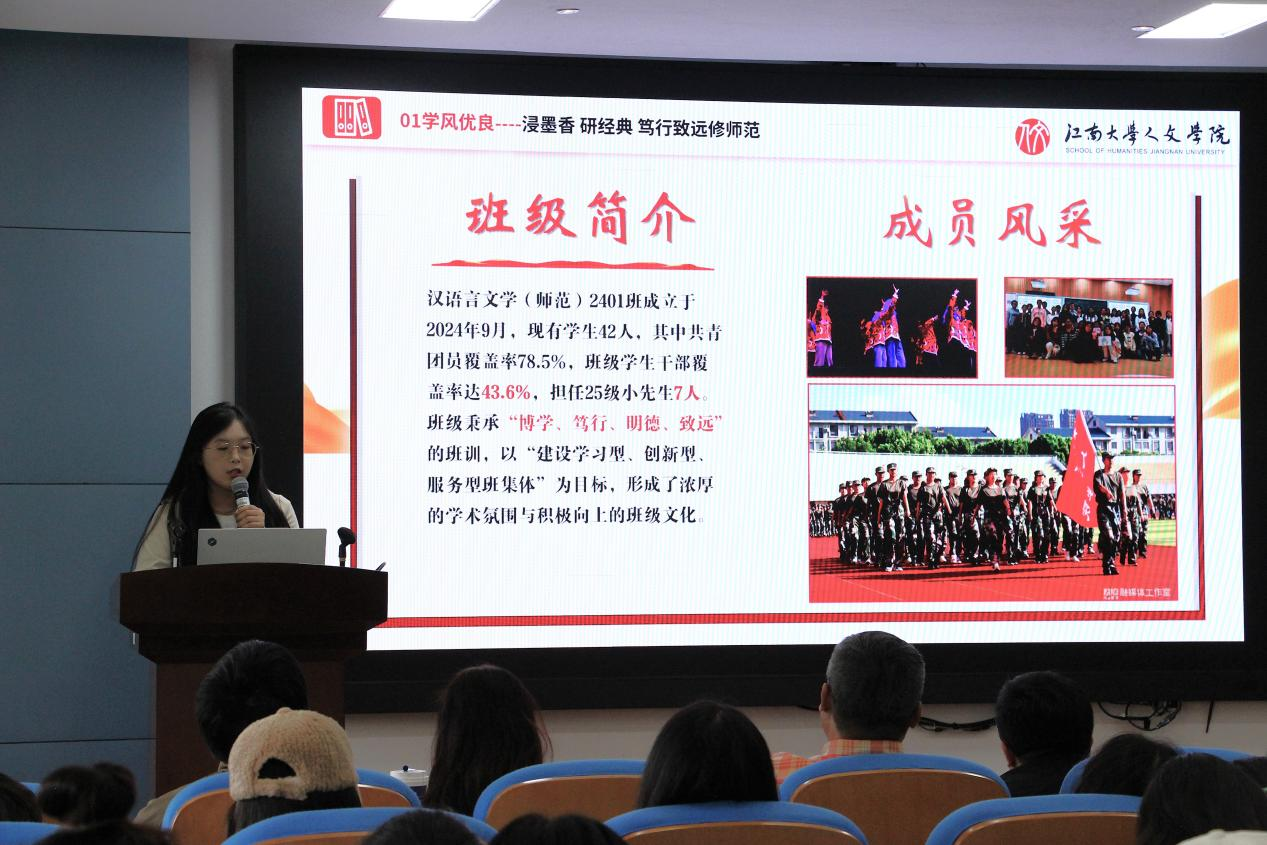 经过前期学院初评,共有18个班级入围此次优良学风班级创建评比答辩。本次答辩包括“班级风采展示”与“评委问答”两个环节。在风采展示环节中,各班答辩代表围绕班级组织建设、获奖成果,班风文化,社会实践以及未来展望等多维度对班级学风建设进行了充分阐述,展现了人文学子的精神风貌和青春活力。在评委问答环节中,评委老师对各班工作开展情况进行了提问,既肯定了各班的努力与创新,也从专业视角指出了优化建议。