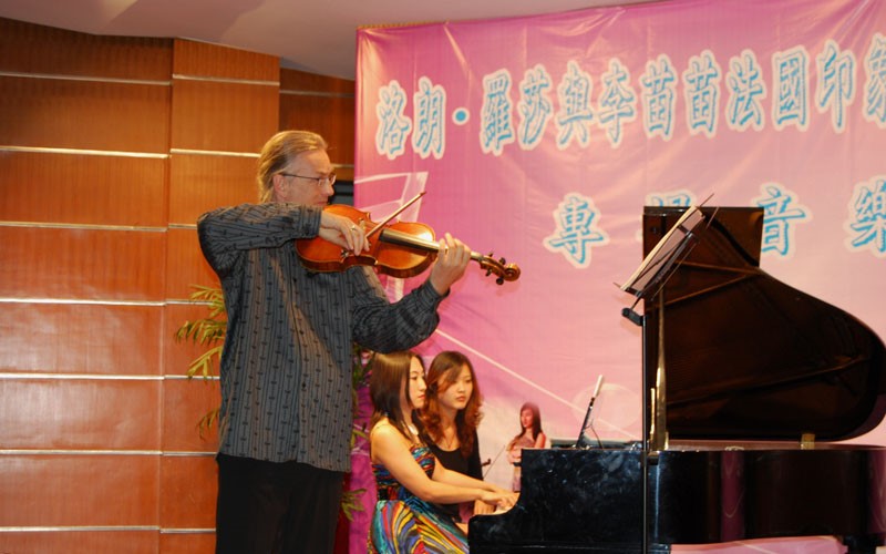 2013年10月17日晚7时,日内瓦音乐学院教授、世界著名中提琴演奏家洛朗·罗莎先生和钢琴演奏家李苗苗女士受永利集团官网邀请在北区活动中心音乐厅举办了法国印象派音乐专场音乐会。永利集团官网领导方正泉书记、田良臣副院长、蔡爱国副院长,音乐系主任马克老师等出席了音乐会。10月18日下午,永利集团官网还组织音乐系学生与洛朗·罗莎、李苗苗进行交流学习。
