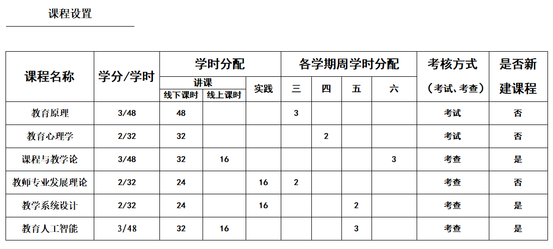 建立教育学核心理论课程和实践课程的教师教育课程体系。