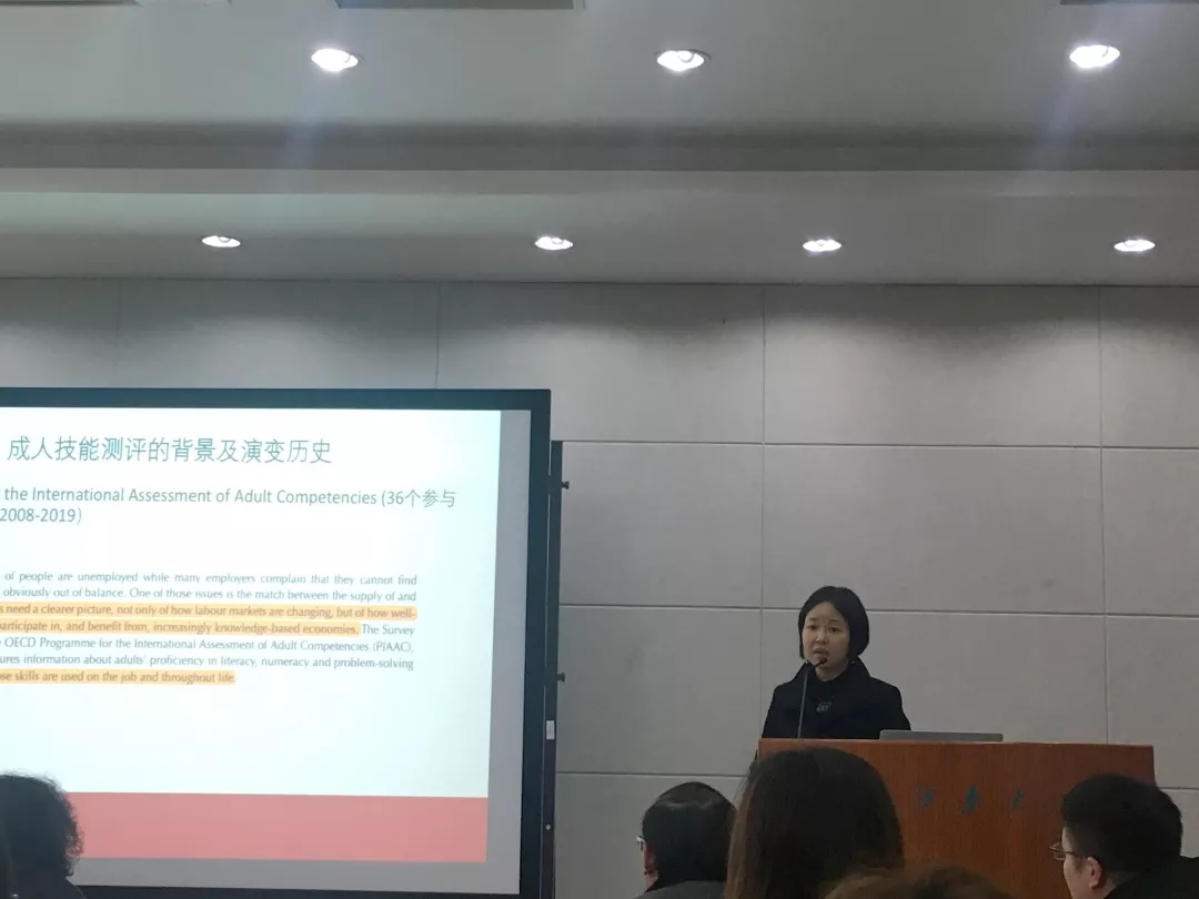 交流会伊始,主持人致辞,对刘博士及与会嘉宾的到来表示了热烈欢迎。随后,刘华聪博士以“什么是文盲”作开篇发问,通过纺织工人和高新技术人才的图片对比,阐释了当代“功能性文盲”的定义,进而对成人技能测评进行诠释。此外,刘华聪博士向师生们介绍了PIAAC对三类基本技能的定义,PIAAC的基本概况以及该评估体系对成人阅读、数理能力测试的基本操作情况,向全院师生们展示了世界不同国家在该项测试中的研究结果。进而,刘博士着重强调了社交情感能力的重要性。她就研究中的两个问题,提出PIAAC数据库中的社交情感能力,并以2005—2017年以色列、德国、美国三个国家的产业结构变化为例,分析了社交情感因素在弥补认知能力方面发挥的重要作用。最后,刘博士就3044am永利集团3044noc老师和同学们提出的疑问进行热情解答。