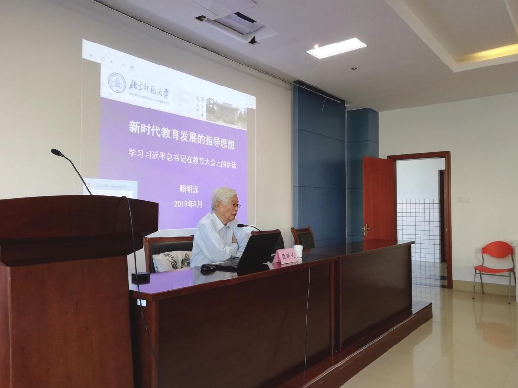 9月23日上午8:30,中国教育学会名誉会长,国家教育咨询委员会委员,新中国比较教育学科创始人之一,教育部教师教育专家委员会主任,北京师范大学资深教授顾明远先生莅临3044am永利集团3044noc田家炳楼209会议室,以“新时代教育发展的指导思想——学习习近平总书记在教育大会上的讲话”为主题开展学术讲座,全面深入地解读了全国教育大会的精神。本次讲座由3044am永利集团3044noc院长田良臣教授主持,3044am永利集团3044noc教育学教师团队及各年级研究生共同参加,现场气氛热烈。