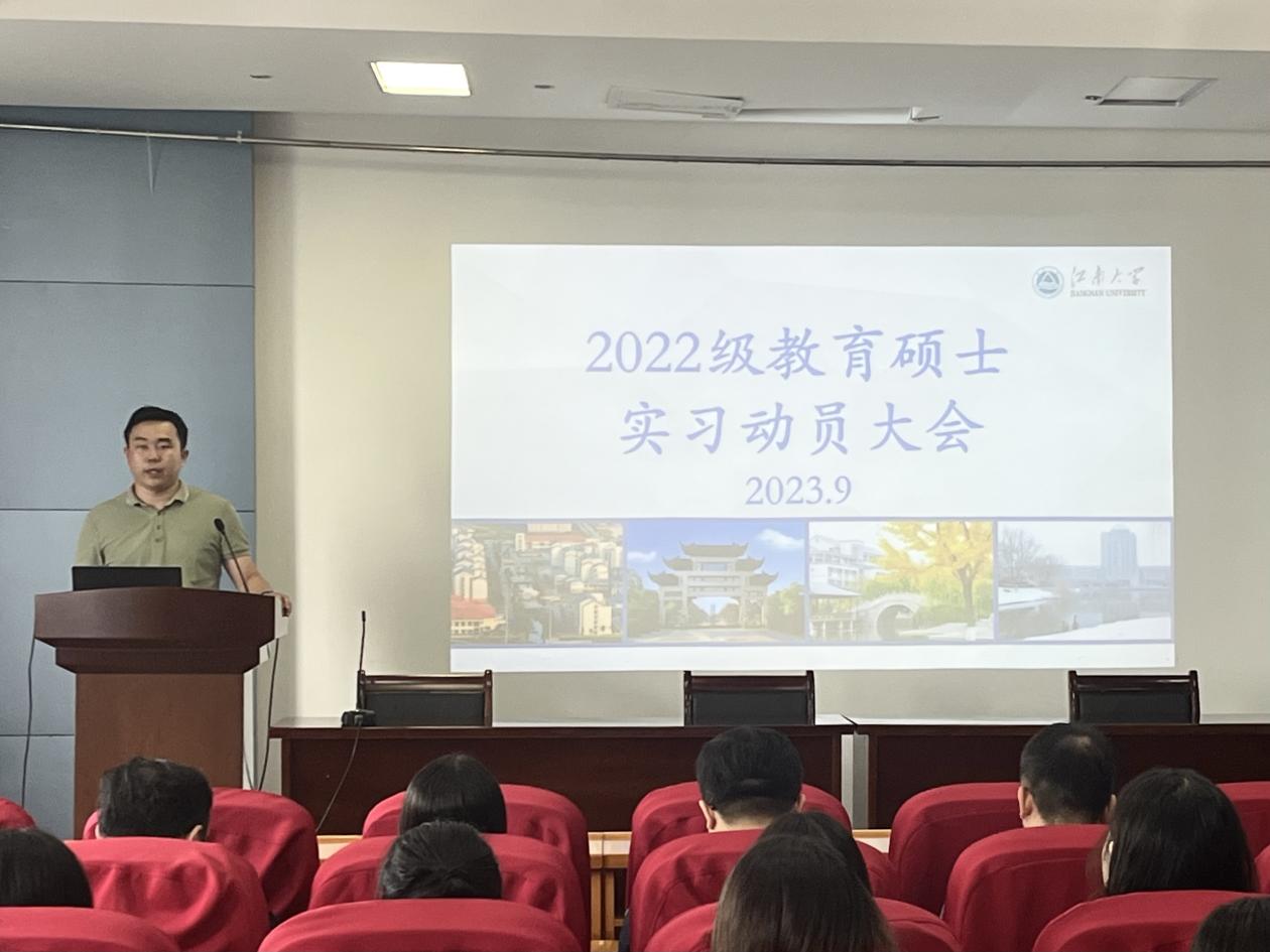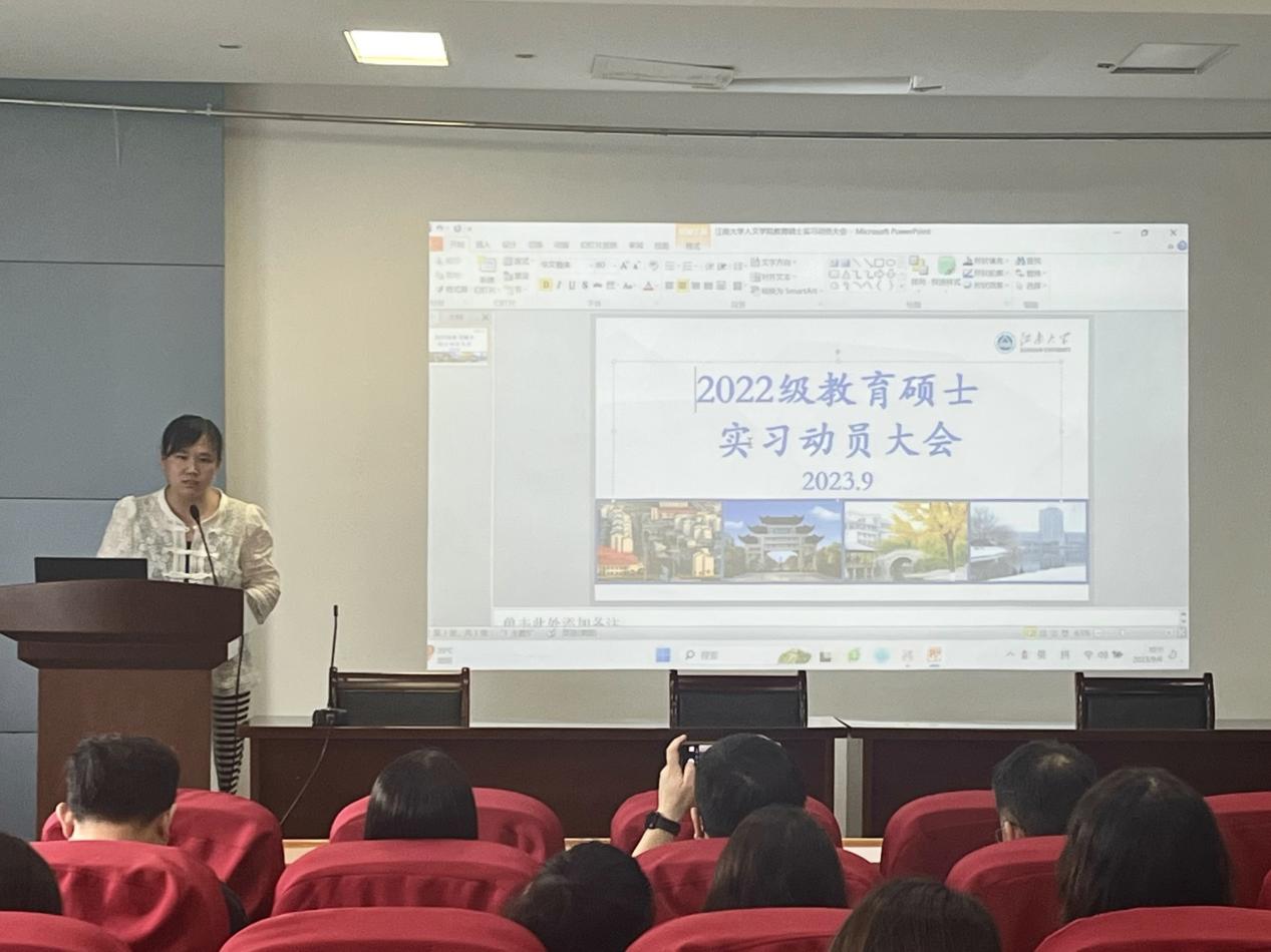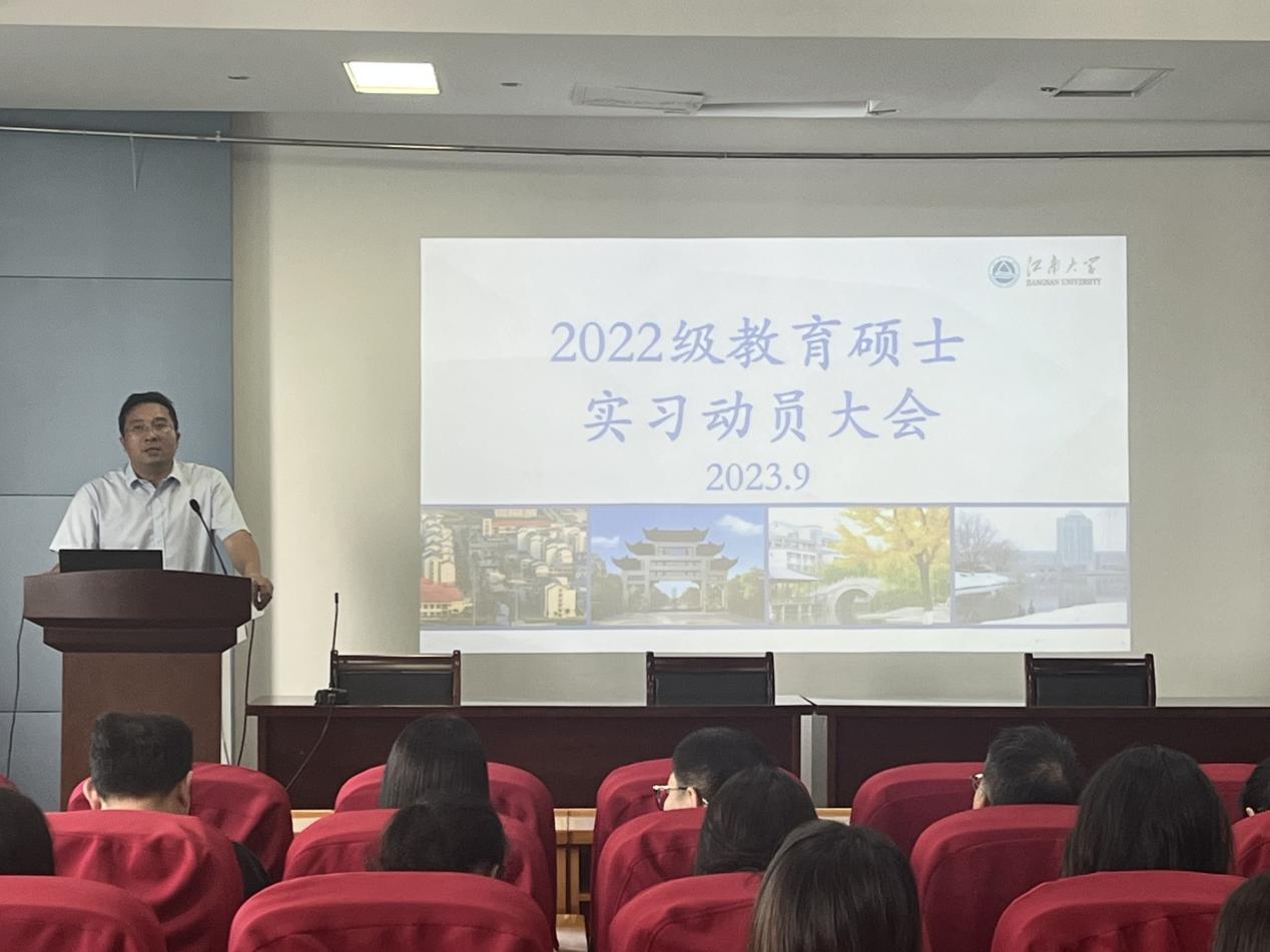 2023年9月6日上午,永利集团官网在田楼209召开2022级教育硕士实习动员大会。3044am永利集团3044noc副院长伍红林(主持工作)、副院长于书娟、院长助理田贤鹏、导师代表孙丽丽、辅导员邵祥岚、教育专业硕士各方向导师(语文、英语、数学、历史、音乐、现代教育技术、心理健康教育)和全体22级教育专业硕士参加本次动员会。动员会由于书娟副院长主持。