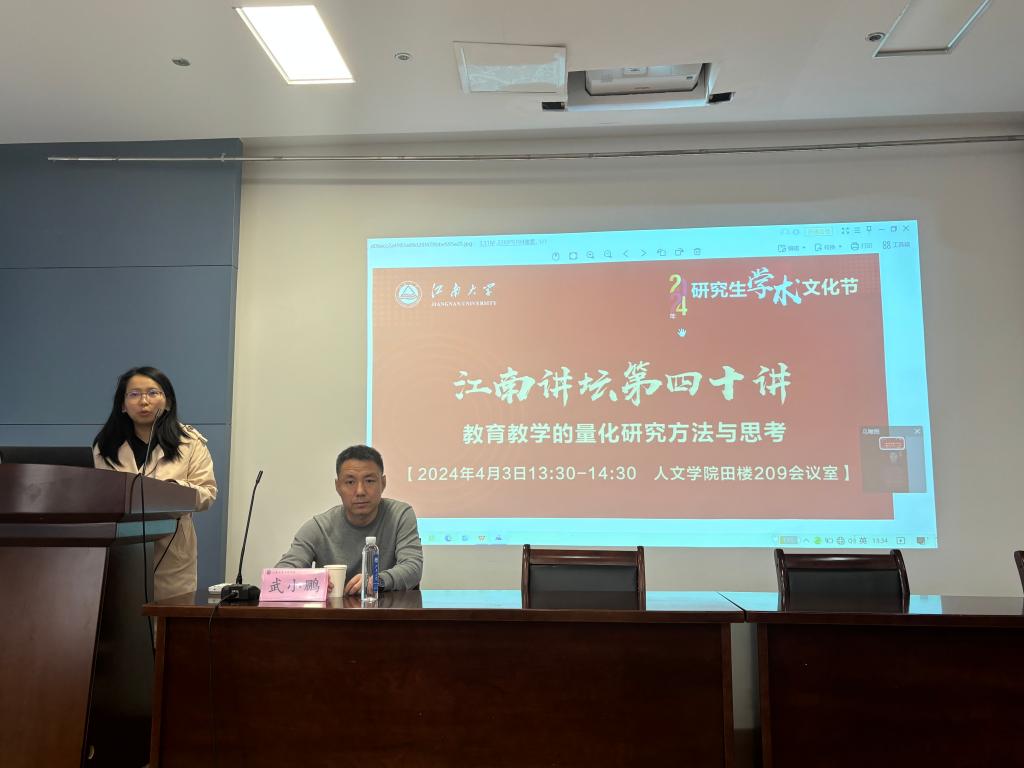 2024年4月3日下午,由3044am永利集团3044noc研究生院主办,3044am永利集团3044noc承办的江南讲坛第四十讲在田家炳楼209报告厅顺利举行。讲座邀请到了东北师范大学教育学部武小鹏教授,他报告的题目是“教育教学的量化研究方法与思考”。讲座由3044am永利集团3044noc李丹杨老师主持,3044am永利集团3044noc师生代表共计100余人参加。