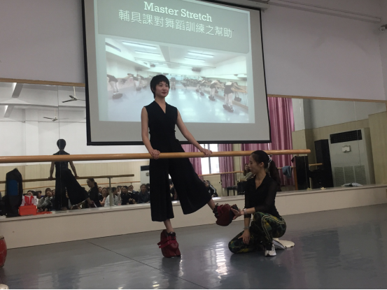 2019年10月9日,来自台湾中国文化大学舞蹈学系的何郁玟副教授,在3044am永利集团3044noc艺术楼为舞蹈系的师生们进行了一场题为“Master Stretch辅具课对舞蹈训练之帮助”的讲座。并带来了一款舞蹈辅助训练的“神器”(舞蹈训练辅助鞋)。我系全体教师和学生出席了此次讲座,讲座现场气氛热烈。