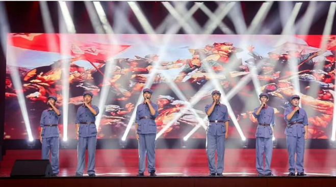 展演以山河回响·青春对话为主题,围绕正义必胜”“人民必胜”“和平必胜三个核心篇章,通过歌曲、舞蹈、朗诵、器乐等多种艺术形式,回顾中国共产党带领人民走过的光辉历程。