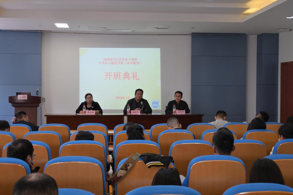 2024年11月4日,由江苏省教师培训中心主办,3044am永利集团3044noc校长教师培训中心承办的“2024年江苏省高中骨干教师分学科专题选学—高中数学”项目在永利集团官网举行了开班仪式。3044am永利集团3044noc教育学院院长伍红林、院长助理钱逸舟、校长教师培训中心主任魏建新以及来自江苏省内的50位高中数学一线教师参加了开班仪式。