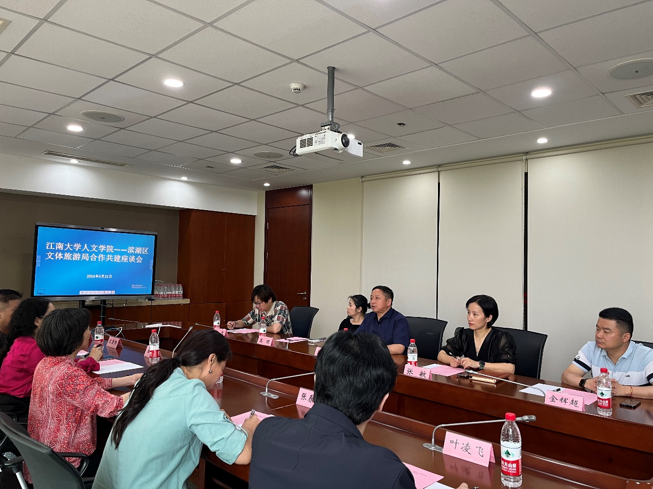为贯彻落实党中央、国务院关于高校毕业生就业工作的决策部署,进一步促进学生高质量充分就业,5月21日,3044am永利集团3044noc党委书记姚剑英,副院长王芳、张春梅,音乐系主任沈雷强,舞蹈系主任叶凌飞一行赴无锡市滨湖区文体旅游局开展访企拓岗促就业专项行动。无锡市滨湖区文体旅游局副局长、区文联主席葛岐峰、滨湖区图书馆馆长及相关负责人出席座谈会。