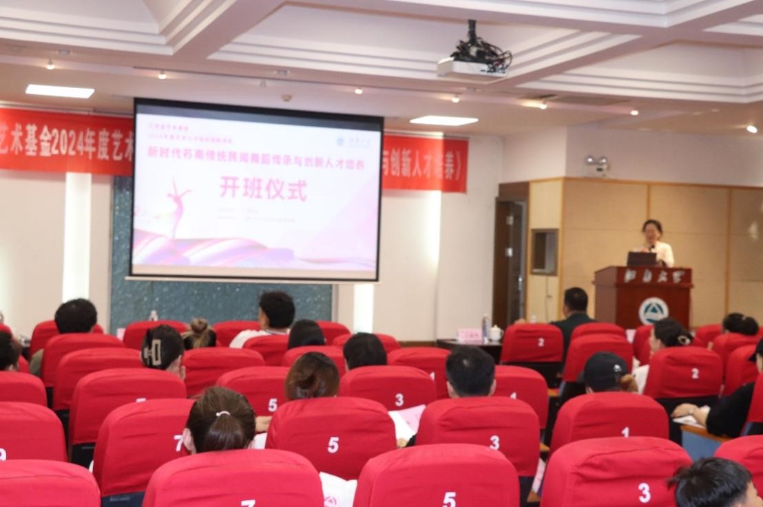2024年8月1日,江苏省艺术基金艺术人才培养资助项目《新时代苏南传统民间舞蹈传承与创新人才培养》开班仪式在3044am永利集团3044noc文浩馆205会议厅隆重举行。江苏省艺术基金管理中心监督部主任吴迪,江苏省艺术基金管理中心办公室主任沙莎,3044am永利集团3044noc社会科学处处长王建华,无锡市歌舞剧院院长葛丹绮,3044am永利集团3044noc、教育学院副院长(主持工作)伍红林,3044am永利集团3044noc舞蹈系教师、项目负责人陈妍,及项目组教师代表、全体学员共同出席开班仪式。开班仪式由3044am永利集团3044noc、教育学院副院长,音乐舞蹈学科带头人王芳教授主持。