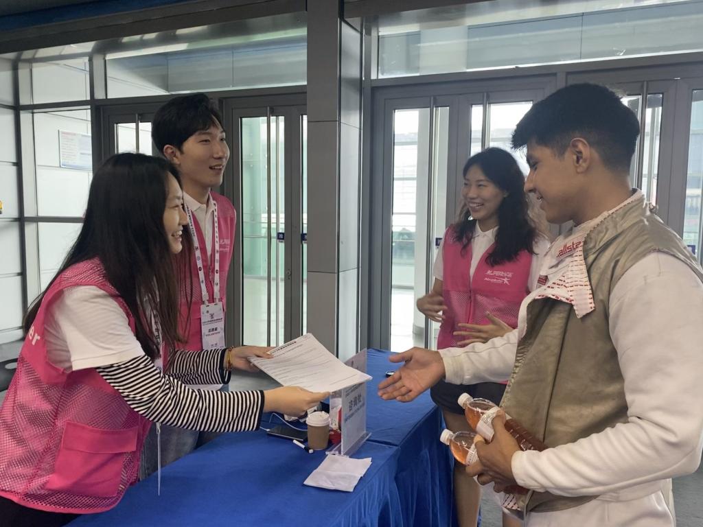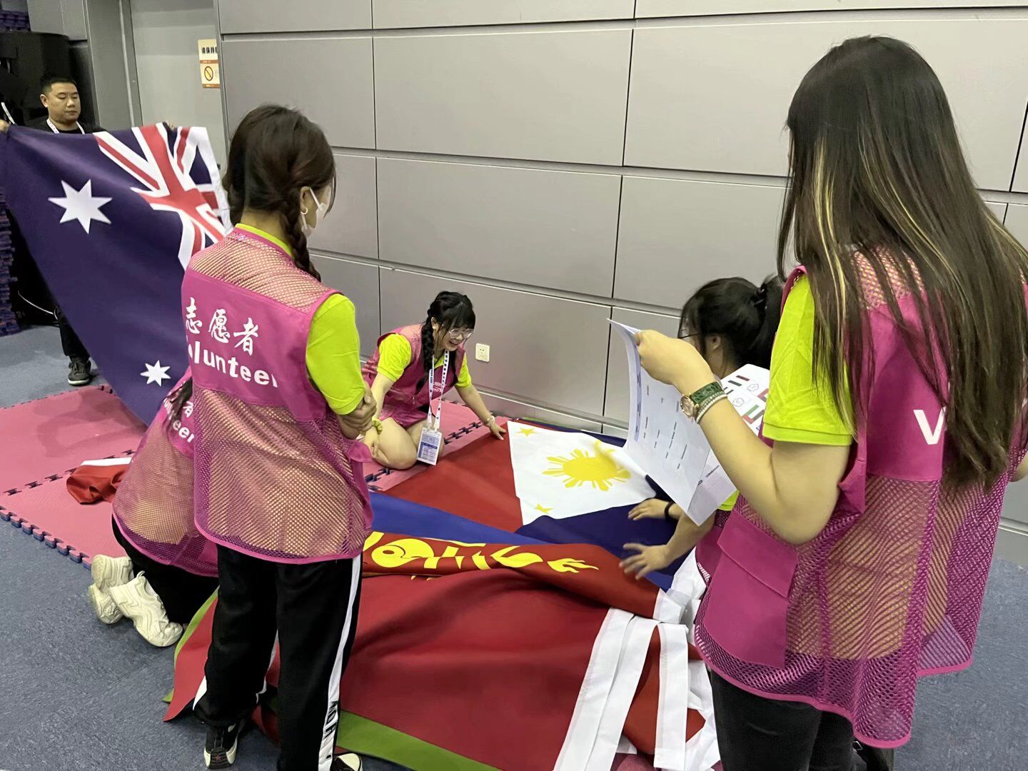 赛事开始前,志愿者们已经进行了亚洲击剑锦标赛的基本情况、颁奖流程、志愿者服务礼仪规范、志愿者安全自护教育等内容的专业培训。赛事期间,志愿者们分散在不同服务点,报道处志愿者协助酒店报到处负责人,帮助办理运动员入住以及物品分发;颁奖协助志愿者负责证书奖牌奖杯的分配,以及国旗的确认;剑道志愿者进行赛场录像回放,帮助裁判员计时记分……比赛现场,人文学子充分展现出永利集团官网青年志愿者的青春风采,助力赛事有序进行。