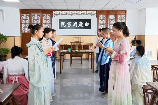 “经典咏流传”国学吟诵课,学生通过传统诗词吟诵了解诗词内涵及发展历程。在妙趣横生的小组诵读、擂台比拼新模式中,学生们逐渐了解了古诗词的结构、音调以及情感,并对源远流长、博大精深的中华传统文化与汉语言、诗词有了更深的认识,在朗诵过程中,学生们不仅进行了“阅读”,更实现了“悦读”。