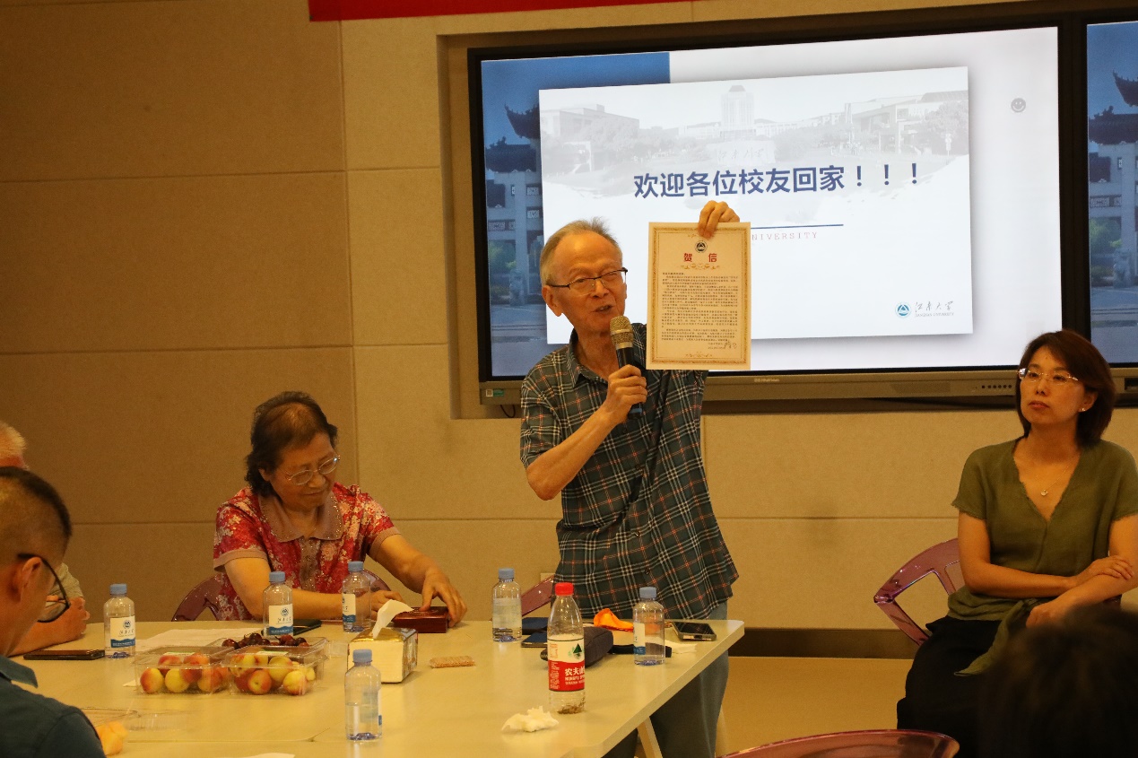 校友们感慨万千,依次与大家分享了自己20年来的发展历程,他们的发言或调侃、或激昂、或谦逊,感慨的人生经历与深切的人生感悟打动了在场的每一个人。同学们发自内心深处的每个字每句话,都饱含着对母校阔别20年的思念和对老师们永远感恩的情怀! 校友们期待再次相聚,再叙同窗谊、再话江大情,并相约十年之后再相聚。