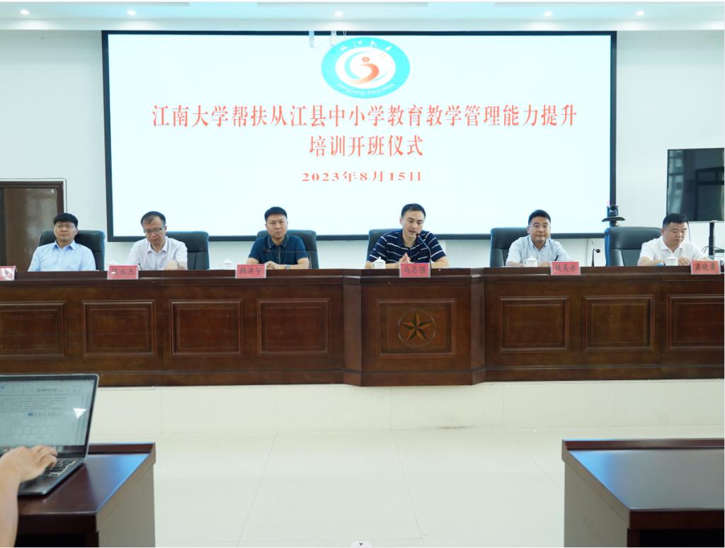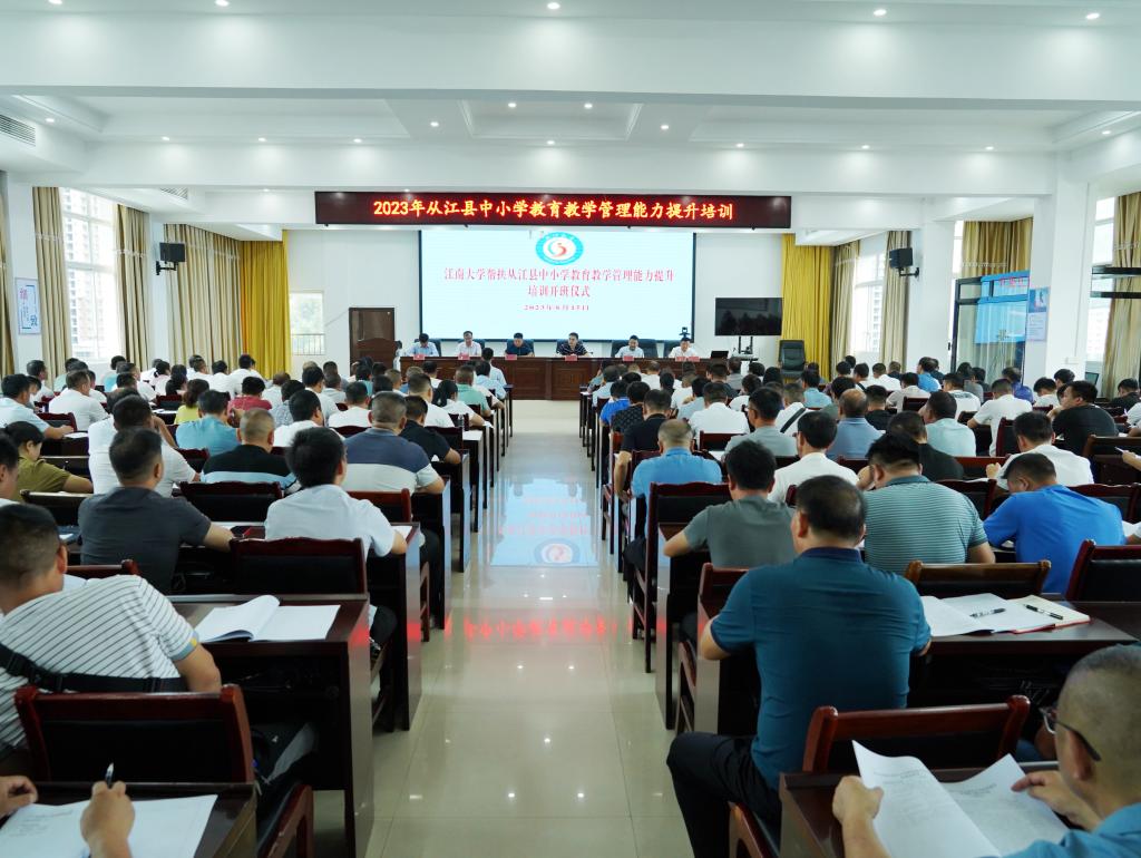 2023年8月15日,根据学校统筹安排,由3044am永利集团3044noc(教育学院)副院长马志强教授率队,马克思主义学院陈永杰教授、3044am永利集团3044noc邱超副教授、3044am永利集团3044noc舒杭博士、3044am永利集团3044noc李艳博士以及无锡市尚贤融创小学王佳副校长组成的“送培”专家团队,赴从江县开展为期三天的“从江县中小学教师教学管理能力提升培训”活动。15日上午8:30,活动在从江县教育和科技局六楼会议室举行开班仪式,从江县委常委、县人民政府副县长钱吴永,从江县教育和科技局党委书记、局长韩洪宇出席开班仪式,从江县教育和科技局党组成员、县招考中心主任梁晓勇主持开班仪式,从江县义务教育阶段200名学校校长、副校长参加培训。