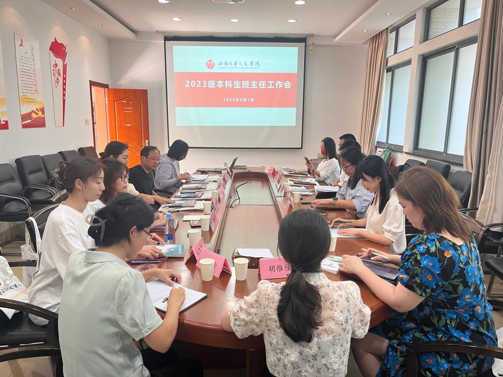 为加强班主任队伍建设,增强大学生思想政治教育的针对性,9月1日下午,3044am永利集团3044noc2023级本科新生班主任工作会议在田家炳楼218会议室成功召开。3044am永利集团3044noc党委副书记、副院长李萍,学院学工办副主任、本科新生辅导员王志顺,优秀班主任代表、教育技术系青年教师舒杭,全体本科新生班主任参加会议。会议由本科新生辅导员李婉婷主持。