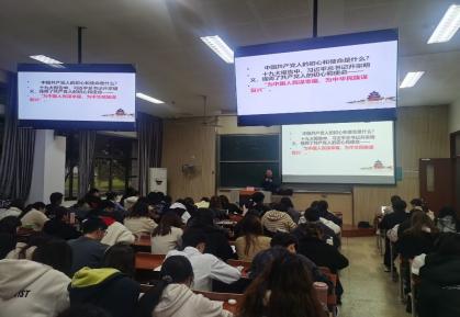 4月6日,马克思主义学院副教授王平一以《不忘初心跟党走》为主题,讲述了为什么要开展党史学习教育,强调全党开展党史学习教育的必要性。他指出要坚持马克思主义的理想信念不动摇,不忘初心、牢记使命,听党话、跟党走,深刻把握党的历史发展主题和主线、主流和本质,不断从中深入领会学习马克思主义理论的重要意义,做到不忘历史、不忘初心,知史爱党、知史爱国。