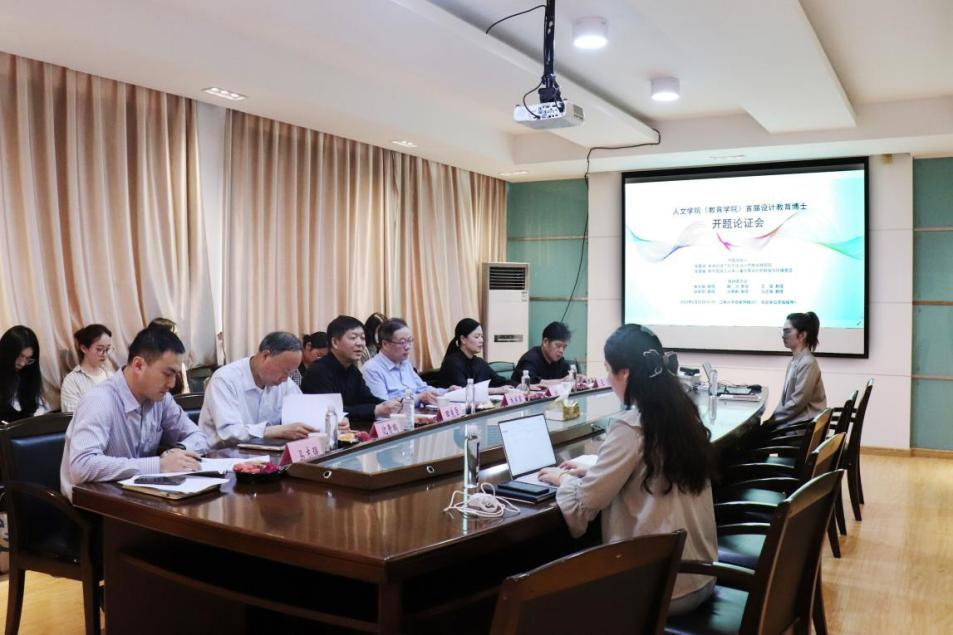 5月25日下午,3044am永利集团3044noc(教育学院)首届设计教育博士开题论证会在田家炳楼207举行。本次开题论证会由校党委书记朱庆葆教授,设计学院院长魏洁教授,设计学院王强教授,3044am永利集团3044noc田良臣、沈贵鹏、马志强教授共同组成专家委员会,对3044am永利集团3044noc(教育学院)设计教育专业2020级博士论文进行开题论证。本次开题论证会由魏洁教授主持,与会专家听取张庭瑜、张蓉菲两位设计教育博士开题报告并充分论证。