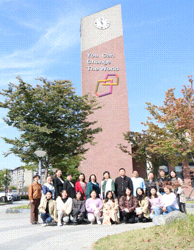 双方学校集体参会教师及3044am永利集团3044noc实习教师在滨湖双语实验中学钟楼下合影