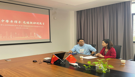 3044am永利集团3044noc音乐系党支部书记孙晓烨与滨湖双语实验中学党建主任吴俊进行党建工作交流