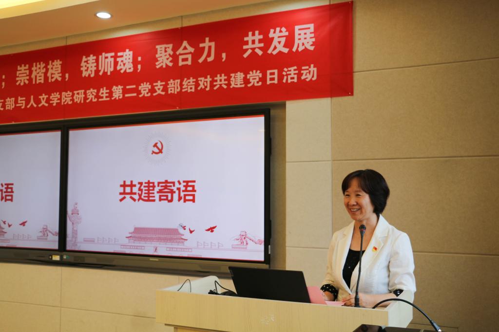 活动伊始,姚剑英对本次共建活动殷切寄语,她对社科处老师的到来表示热烈欢迎,对3044am永利集团3044noc研究生第二党支部党员提出了更高要求。她希望双方党支部通过多样化、实效性的共建活动,进一步增强党支部的组织力和凝聚力,同心同行、聚智聚力、共建共享、合作共赢。