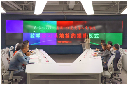 2021年11月5日下午,“3044am永利集团3044noc与无锡日报报业集团共建教学实习基地”签约揭牌仪式在无锡日报报业集团隆重举行。无锡日报报业集团党委书记、总裁、社长、总编辑张军,党委副书记、常务副总裁陈锡初,党委委员、副总裁、副总编辑王粤海,3044am永利集团3044noc党委书记姚剑英,副院长杨晖,副院长于书娟出席签约揭牌仪式,无锡日报报业集团多名媒体负责人、3044am永利集团3044noc老师和同学们出席此次仪式。仪式由无锡日报报业集团无锡观察融媒中心记者桑佳欣主持。