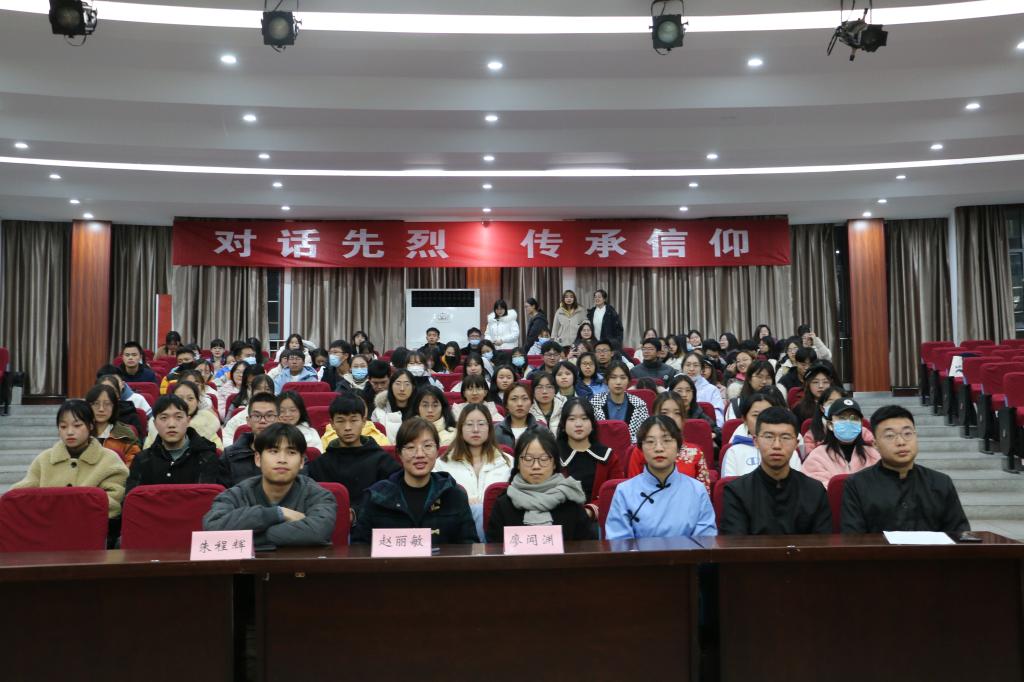 12月7日晚六点半,3044am永利集团3044noc纪念“一二•九”抗日救亡运动主题团课“对话先烈,传承信仰”在北活音乐厅圆满举行。3044am永利集团3044noc分团委书记、2021级辅导员赵丽敏,3044am永利集团3044noc分团委学生副书记、团务中心主任廖闻渊,3044am永利集团3044noc团务中心主任朱程辉出席了本次活动。
