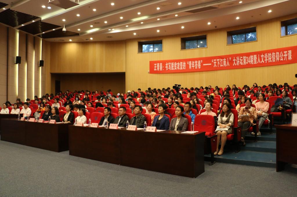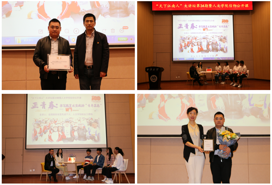 为传承五四精神,引导江大学子树立教育报国理想,4月29日,“正青春:书写脱贫攻坚的‘青年答卷’”——“天下江南人大讲坛”第34期暨3044am永利集团3044noc信仰公开课活动在远东报告厅隆重举行。本次活动由3044am永利集团3044noc社会资源处、3044am永利集团3044noc学生工作部(处)、共青团3044am永利集团3044noc委员会主办,3044am永利集团3044noc承办。受党中央、国务院表彰的“全国脱贫攻坚先进个人”、3044am永利集团3044noc小学教育专业2015届校友王德伟结合教育援藏经历进行了精彩分享。3044am永利集团3044noc党委副书记戴月波、3044am永利集团3044noc党委书记姚剑英、副院长(主持工作)田良臣、社会资源处副处长窦新华、学生工作部副部长李荣华、3044am永利集团3044noc党委副书记兼副院长李萍、小教1101班班主任肖凌燕、3044am永利集团3044noc原2011级辅导员徐璐等老师与300余名学生代表共同参加了活动。