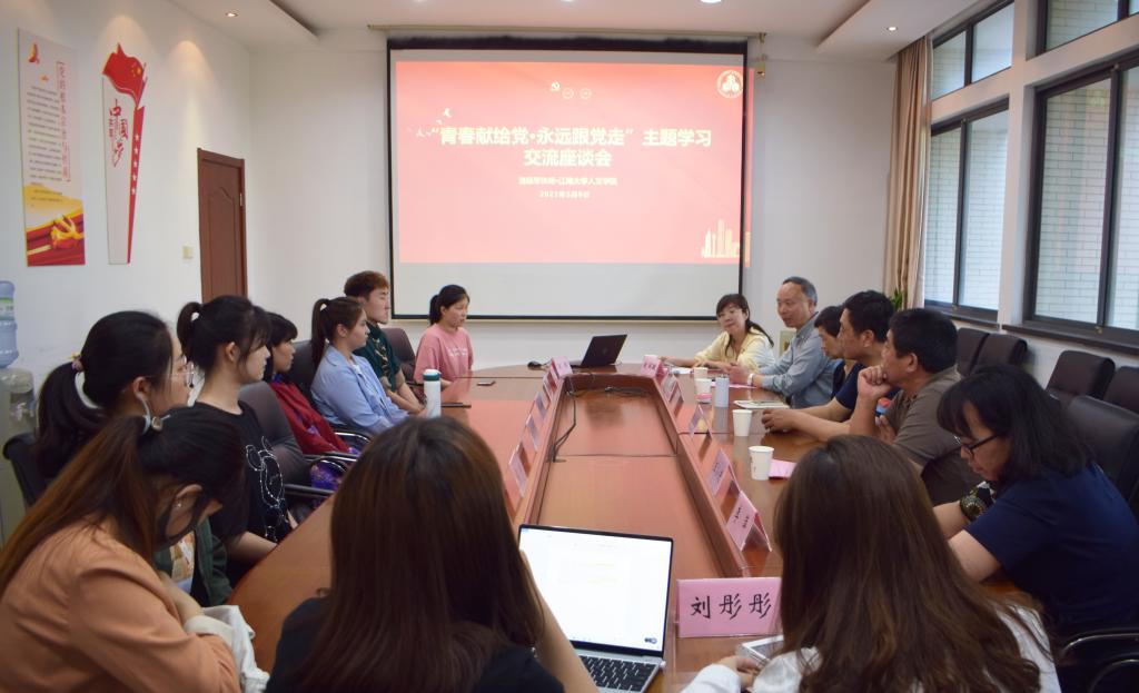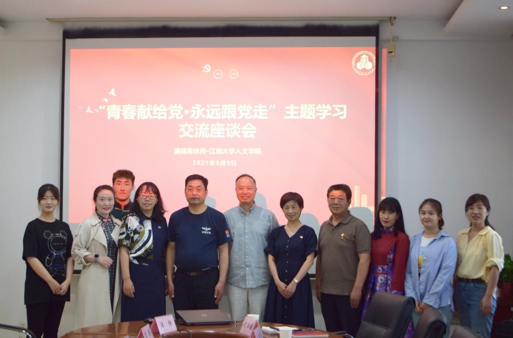 5月9日下午,3044am永利集团3044noc关工委与无锡市清扬军休所在田楼2018会议室开展了“青春献给党·永远跟党走”主题交流座谈会。军休所所长蒋红、军休所关工委主任王小进、原空军第四飞行学院飞行干部进修大队教研室副师职教员朱永亮、3044am永利集团3044noc关工委常务副主任沈贵鹏、党委副书记兼副院长李萍、分团委书记赵丽敏、2018级辅导员刘昕旎,3044am永利集团3044noc关工委学生委员刘彤彤,2018级新疆籍少数民族生代表及团支部书记代表出席了本次活动。座谈会由3044am永利集团3044noc分团委书记赵丽敏主持。
