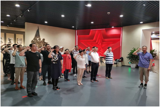 在盐城新四军纪念馆,各位党员一边仔细聆听讲解员的讲解,一边不时驻足观看,深刻体会在一幅幅珍贵照片、一个个鲜活场景、一件件历史实物中折射出的新四军优良革命传统和浴血奋战不怕牺牲的 “铁军精神”。党员们在鲜红的党旗面前举起右拳庄重宣誓:“我宣誓,我志愿加入中国共产党……”一句句入党誓词回响在纪念馆广场,再次发出对党和人民的铮铮誓言,增强了全体党员的使命感和责任感。