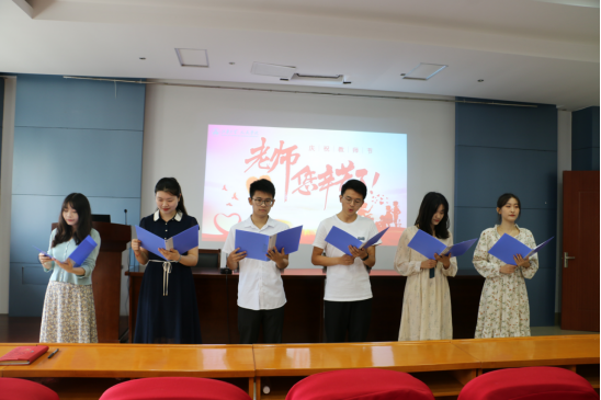 一日为师,终身为父;片言之赐,受益终生。人文学子有无数的话要对老师们说。曾磊、吴彩萍等六位同学在学院教师节大会现场深情朗诵3044am永利集团3044noc王丹鹤同学原创的诗歌《教师礼赞》,用属于他们自己的方式传递感恩与敬佩。