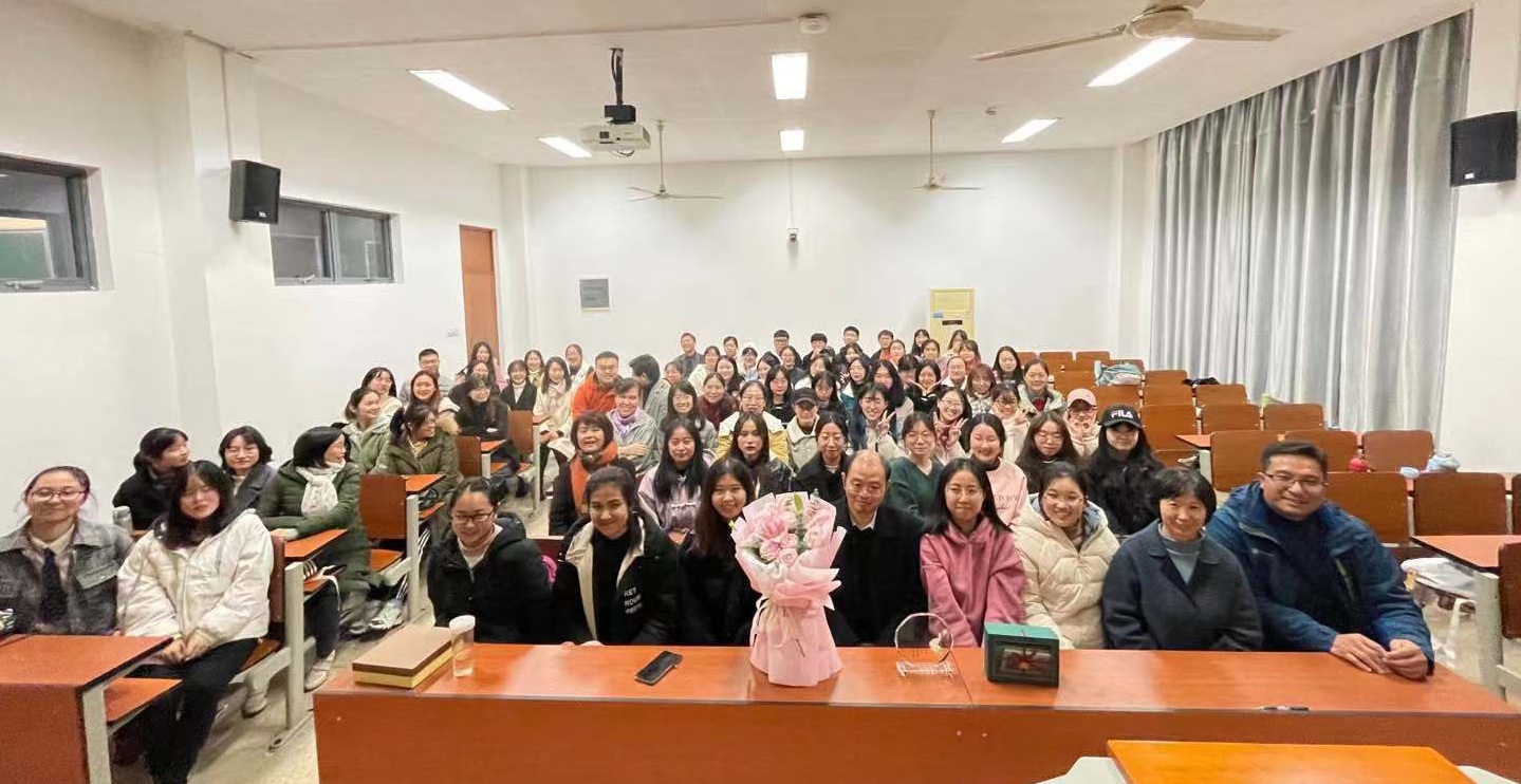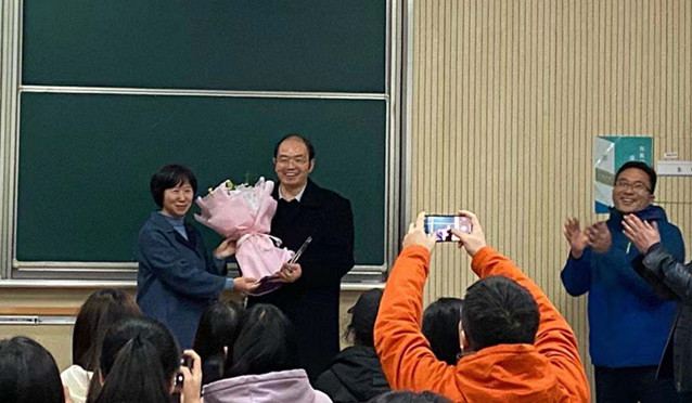 12月3日下午第8-9节是3044am永利集团3044noc教育系尧新瑜教授教师职业生涯的最后一堂课,教育系党支部、工会小组课后在教室里为尧老师组织了一场隆重的荣休仪式,学院党委书记姚剑英、副院长(主持工作)田良臣和教育系全体老师、全体修课学生共同参加了仪式。