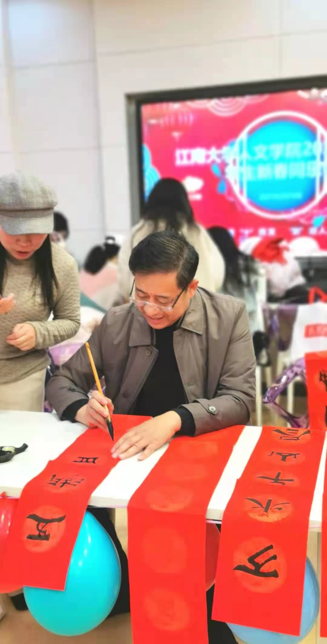 随后,田院长用浓浓的湖北方言为大家送上了新春祝福,紧接着来自12个省份的同学分别用自己的方言互拜新年。田院长表示,方言里涌动着我们的文化基因,是我们文化传承的重要载体,更是我们民族文化自信的体现,同学们要勇于表达,并且用心传承这份悠久的文化。