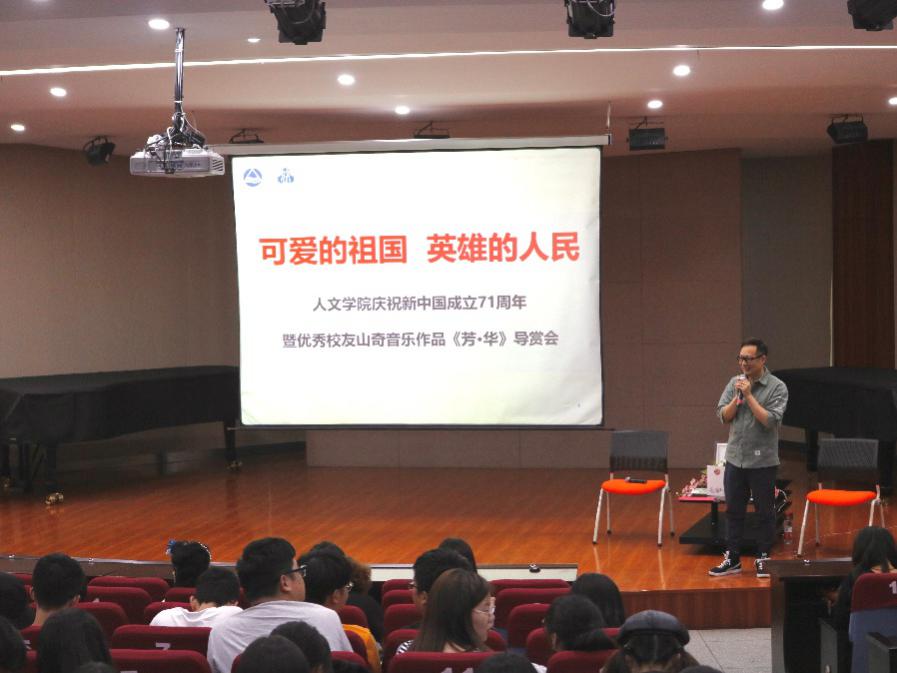 9月24日下午6点半,3044am永利集团3044noc庆祝新中国成立71周年暨优秀校友山奇音乐作品《芳·华》导赏会在北区大学生活动中心音乐厅成功举行,本次活动由3044am永利集团3044noc团委、3044am永利集团3044noc分工会联合举办,3044am永利集团3044noc工会主席黄壮霞老师、3044am永利集团3044noc院长助理王芳老师出席此次导赏会,活动由3044am永利集团3044noc分团委书记黄凤琼老师主持。