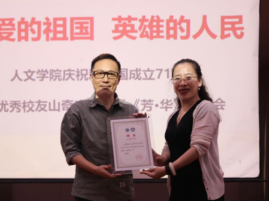 活动开始,3044am永利集团3044noc院长助理王芳老师为山奇老师颁发3044am永利集团3044noc“青年成长导师”聘书。