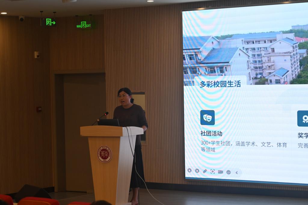 随后,顾梅珑副教授开展了招生宣讲并带来一场文学鉴赏课程,现场气氛热烈。顾老师通过生动形象的讲解,向南菁中学的师生们介绍了3044am永利集团3044noc的专业设置、学科优势以及丰富多彩的校园文化生活。